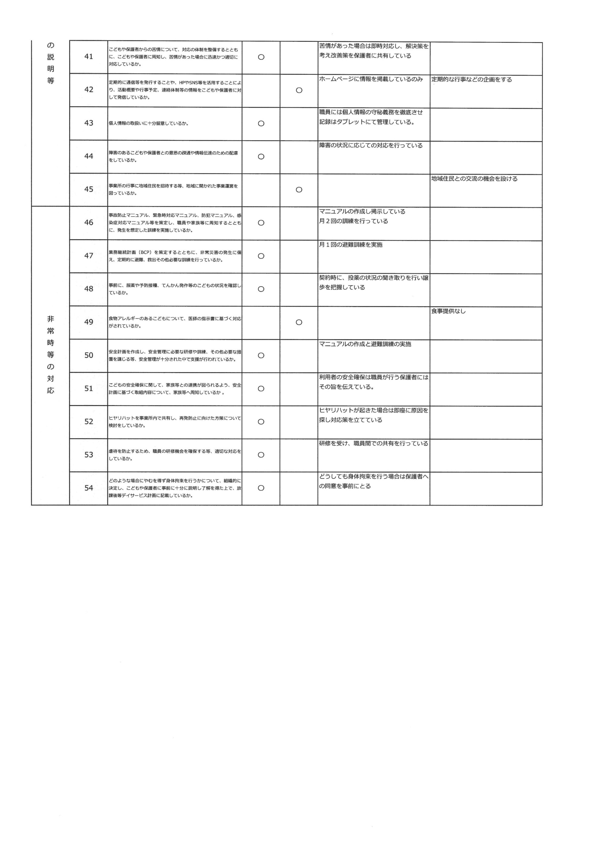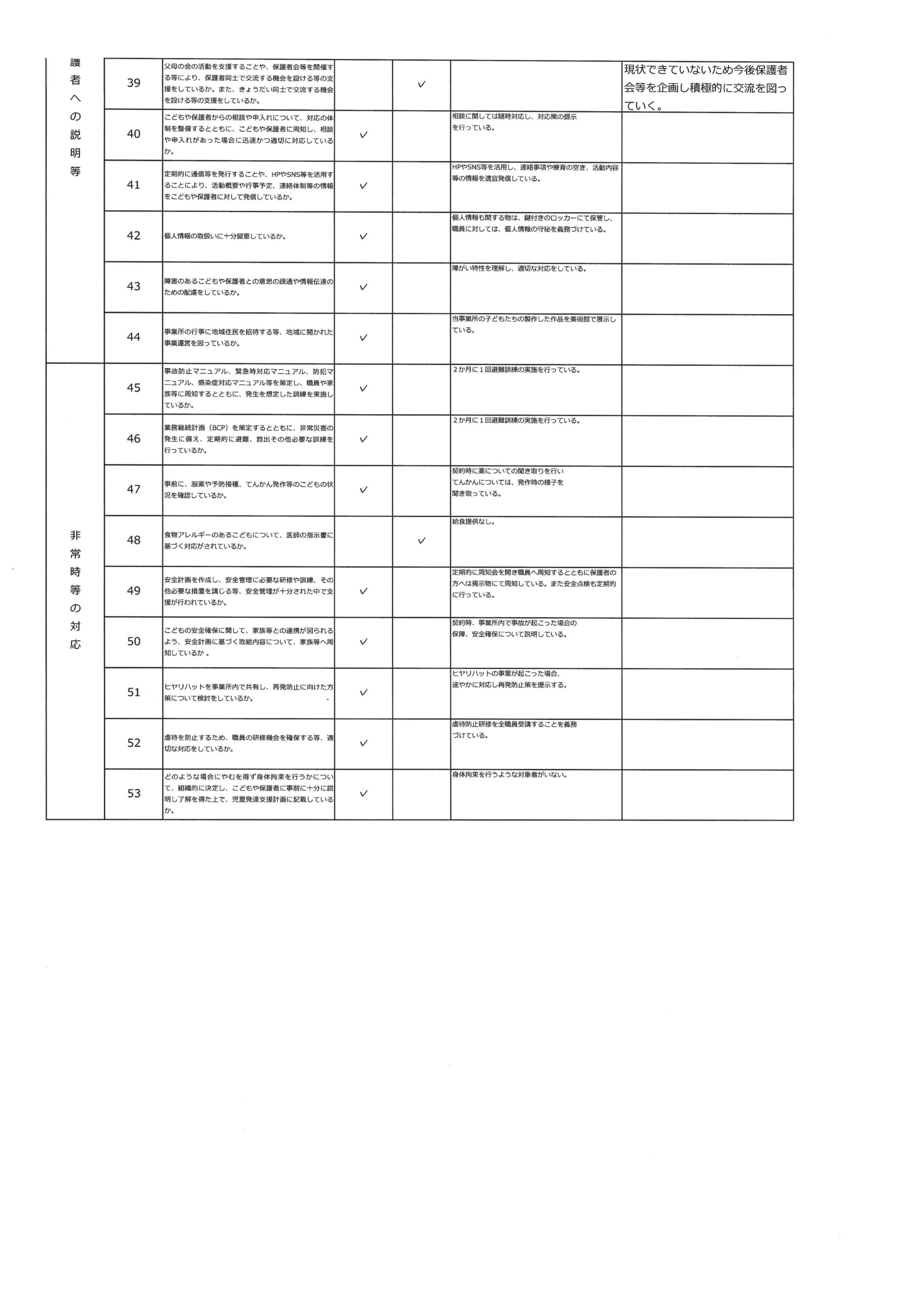 児童に引き続き放課後等デイサービスの事業所内アンケートの集計結果をまとめておりますので確認よろしくお願いします。